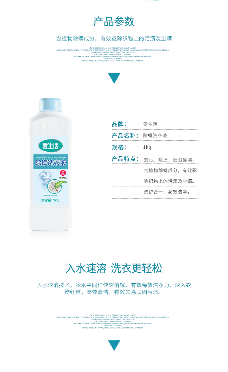爱生活1kg除螨洗衣液(每箱20瓶)