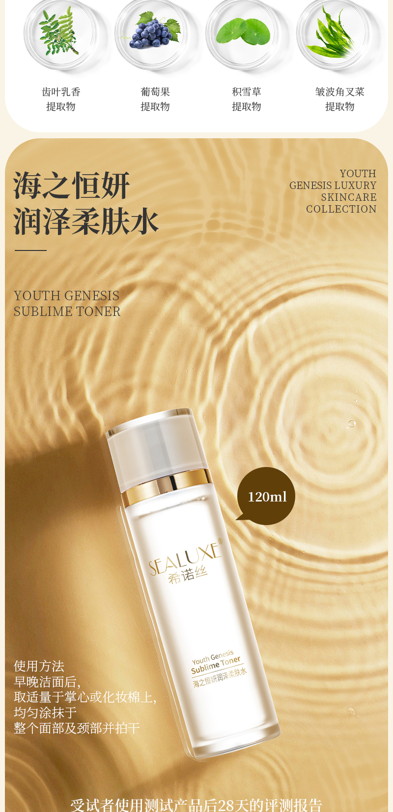 希诺丝120ml海之恒妍润泽柔肤水(每箱20盒)