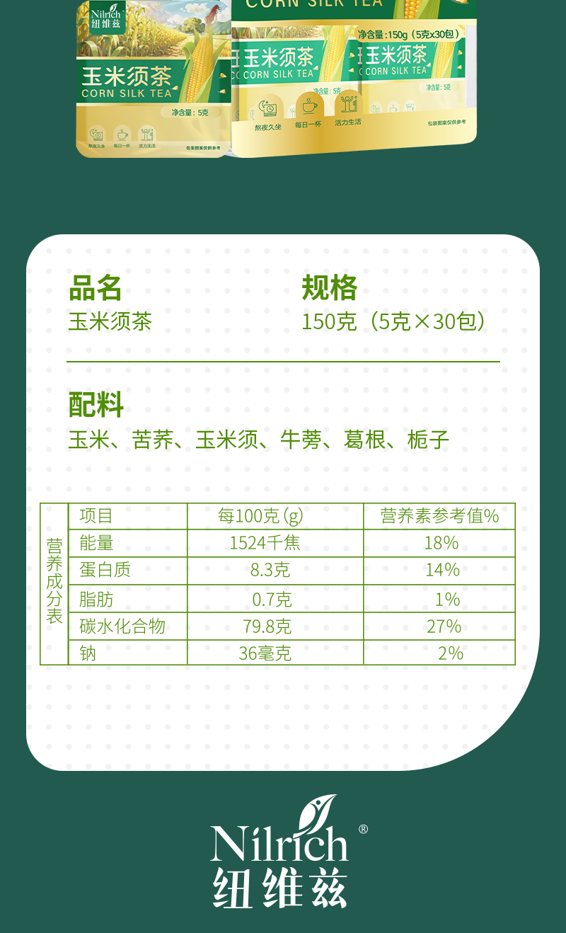 纽维兹玉米须茶150g(每箱24袋)