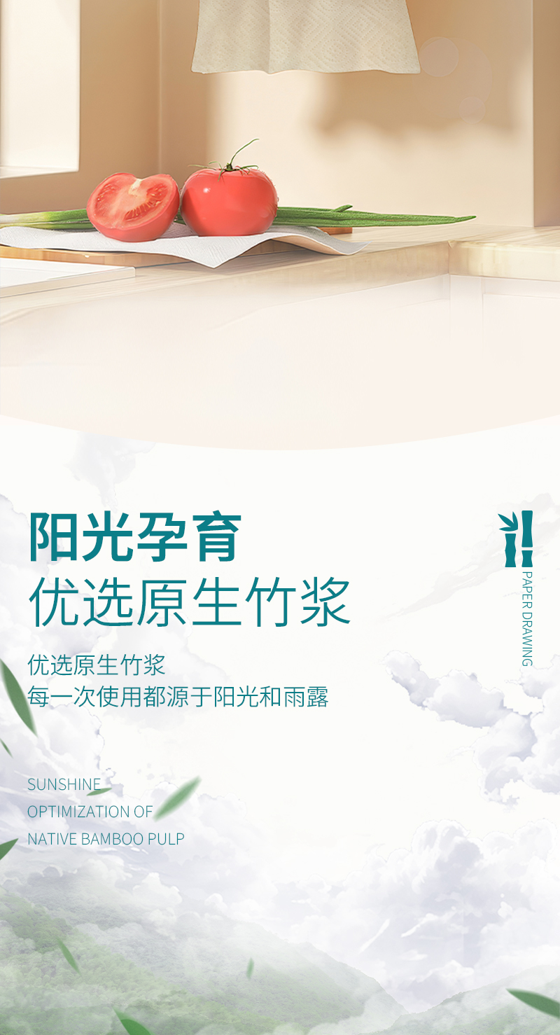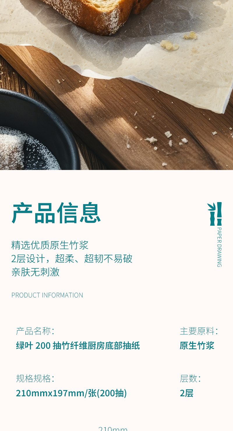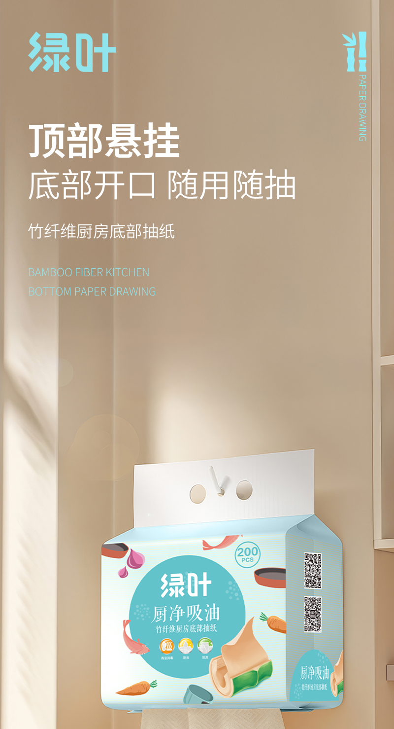 绿叶竹纤维厨房底部抽纸(每箱20提)