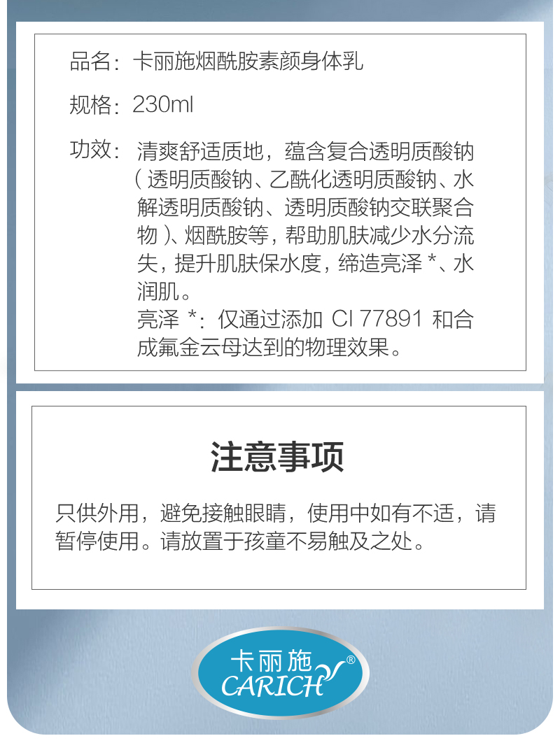 卡丽施烟酰胺素颜身体乳/230ml(每箱20瓶)