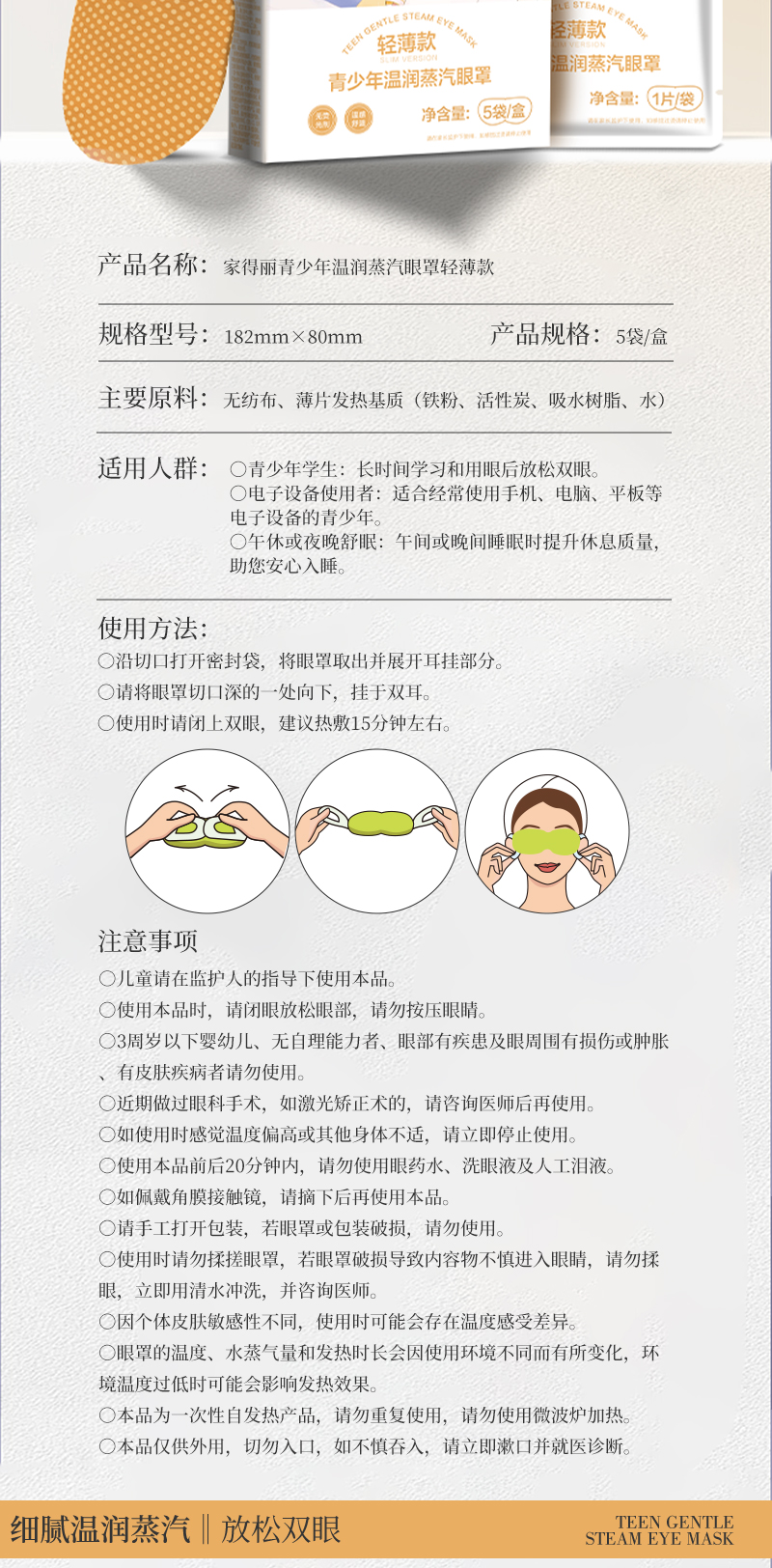 家得丽青少年温润蒸汽眼罩轻薄款(每箱72盒)