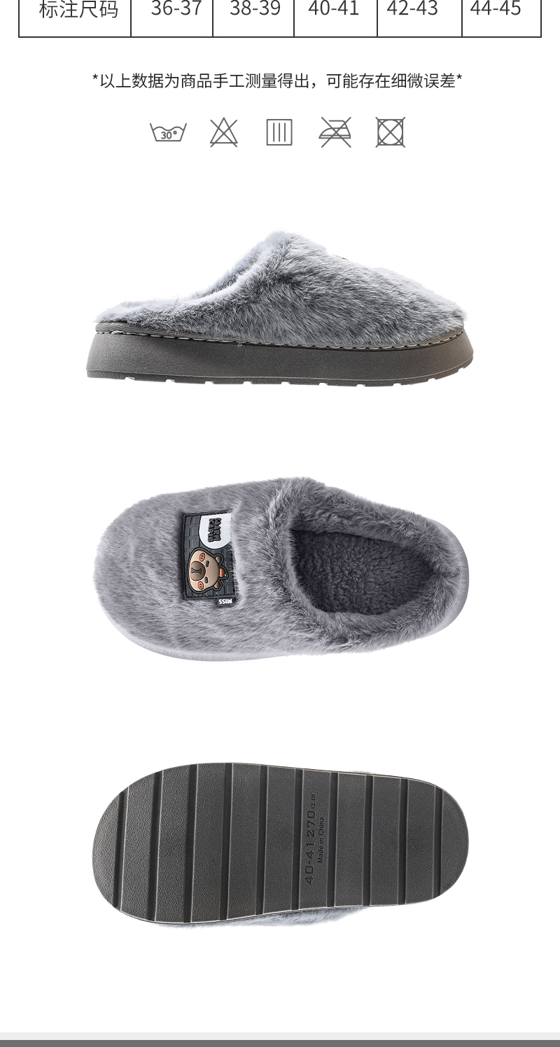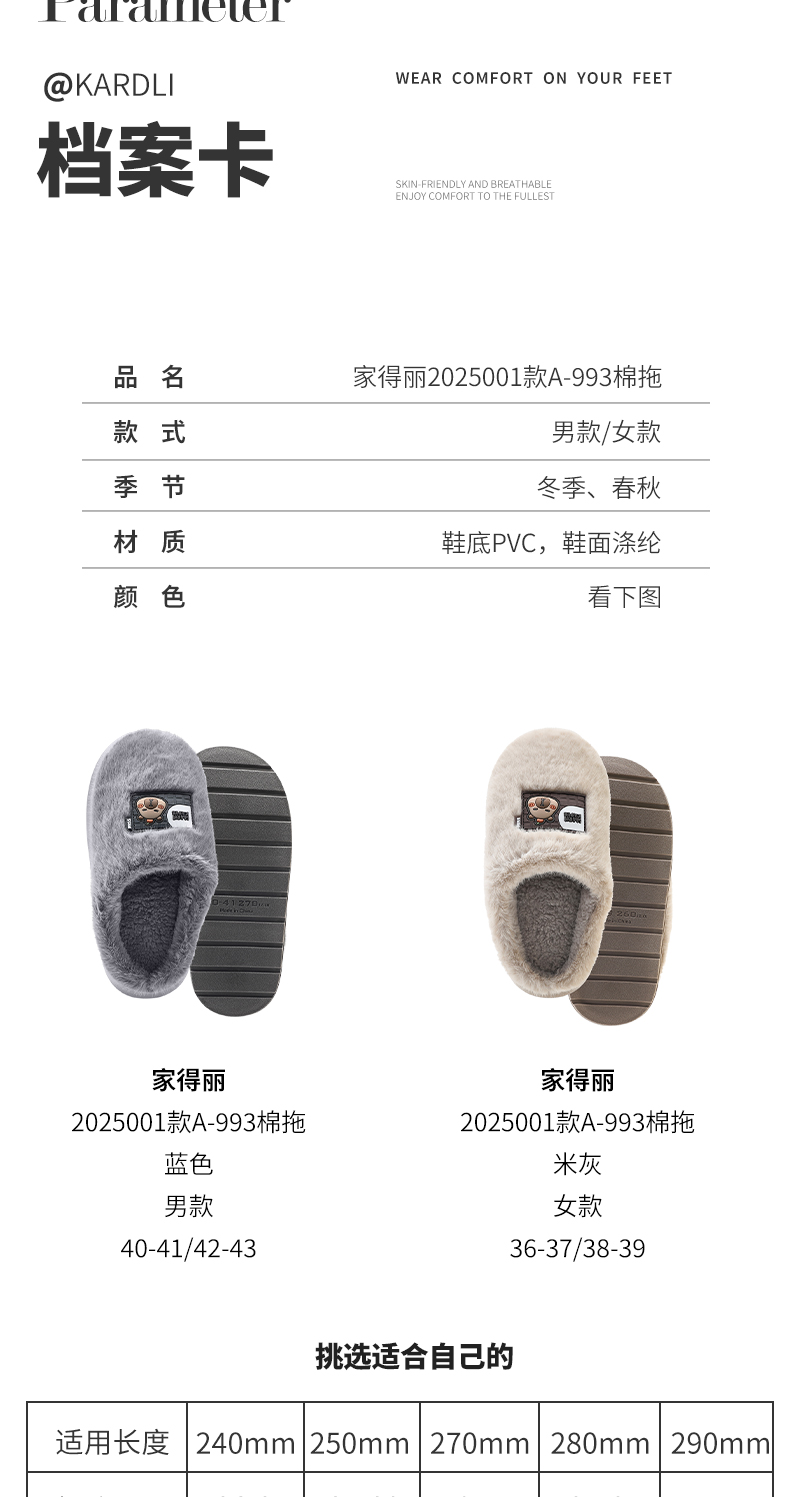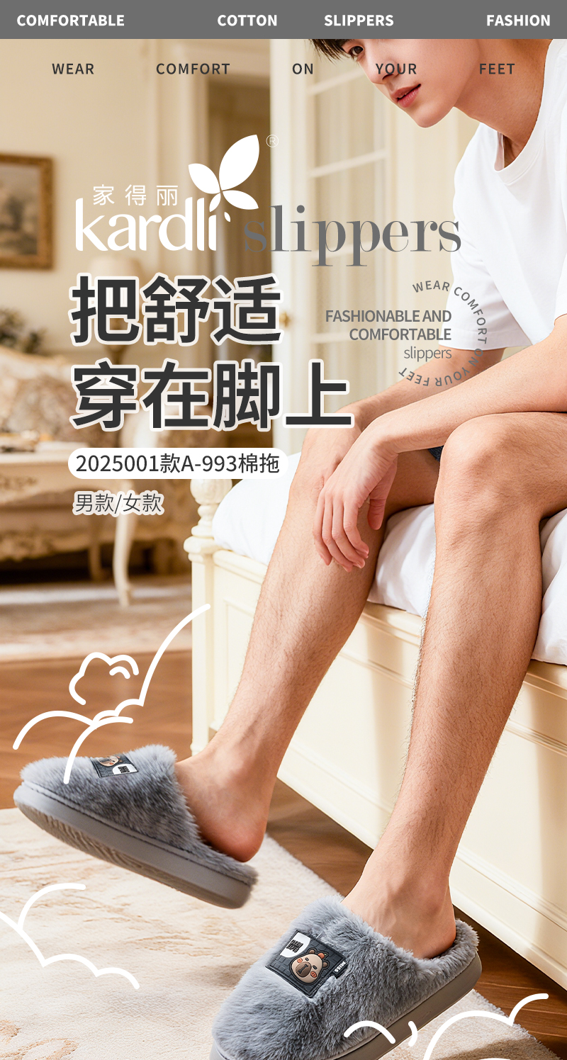 家得丽2025001款A-993米灰女款棉拖/38-39(每箱36双)