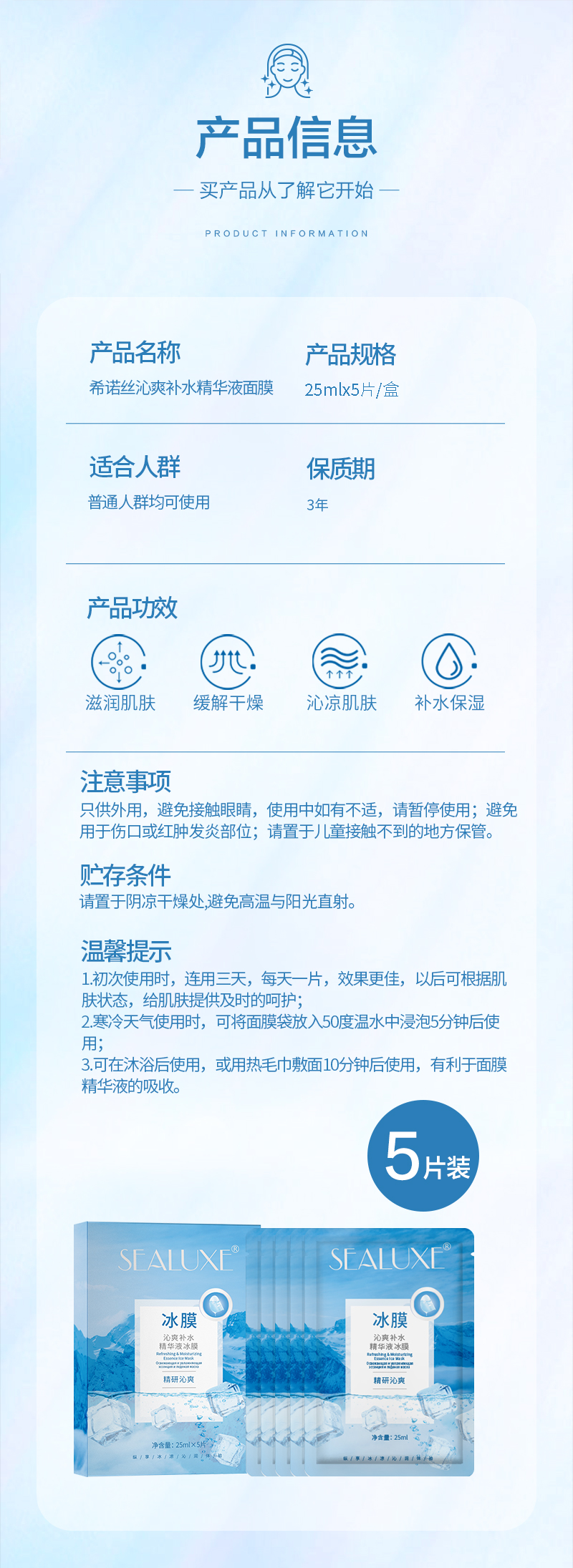希诺丝沁爽补水精华液冰膜(每箱40盒)