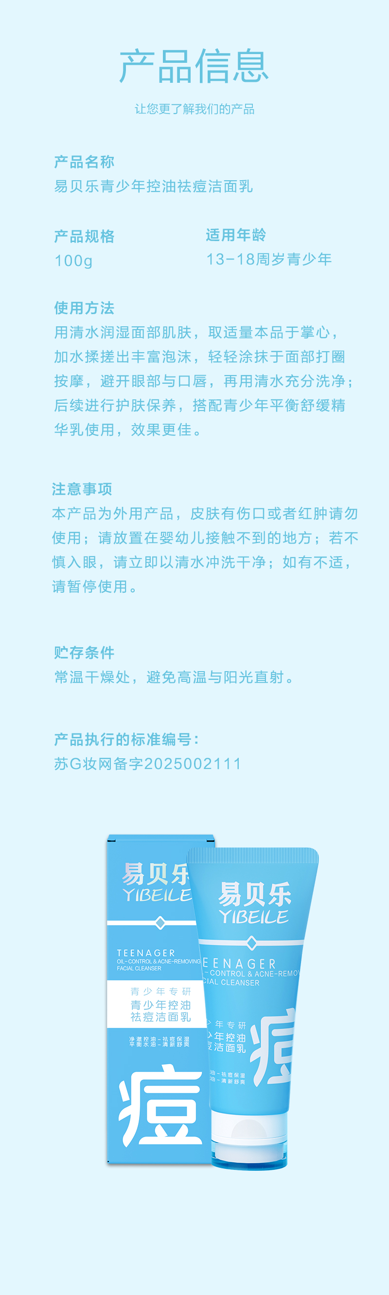 易贝乐青少年控油祛痘洁面乳/100g(每箱40盒)