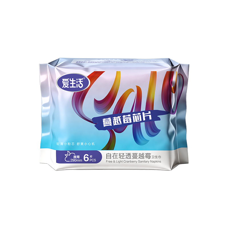 爱生活自在轻透蔓越莓卫生巾夜用290mm/6片装(每箱48包)