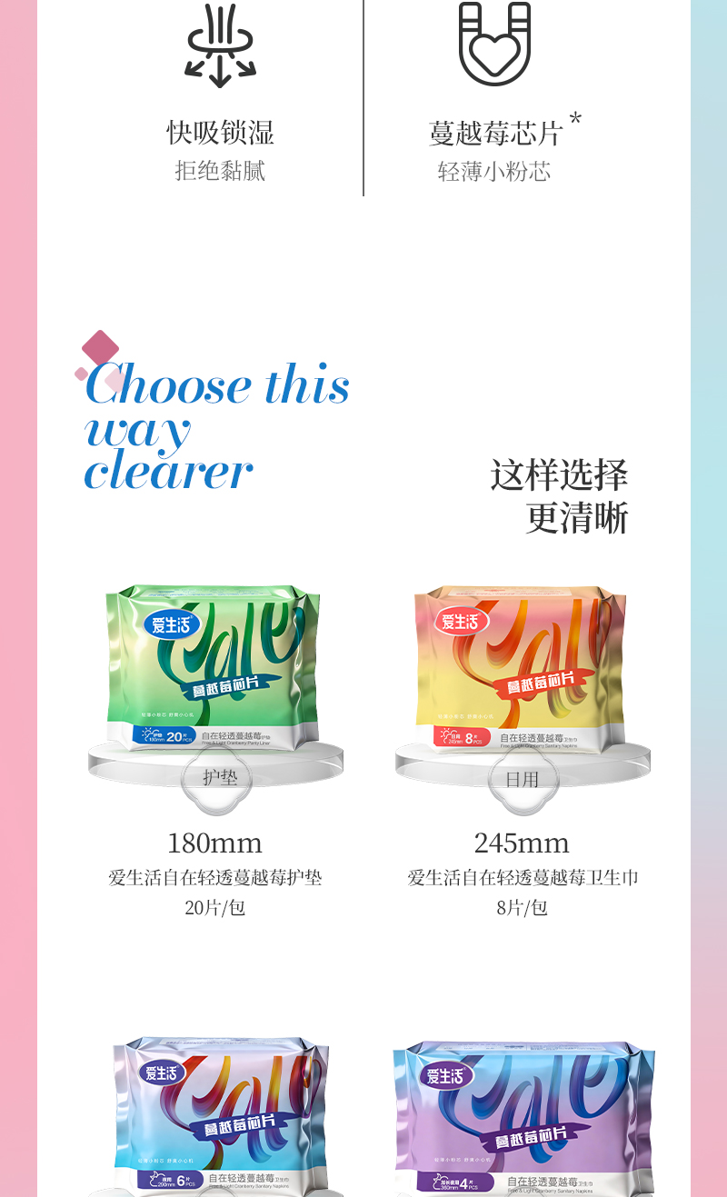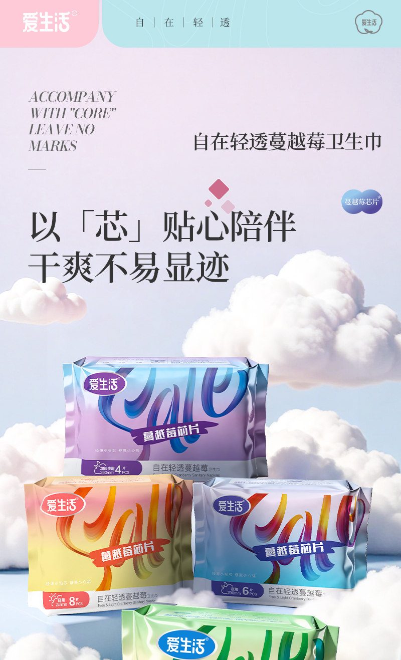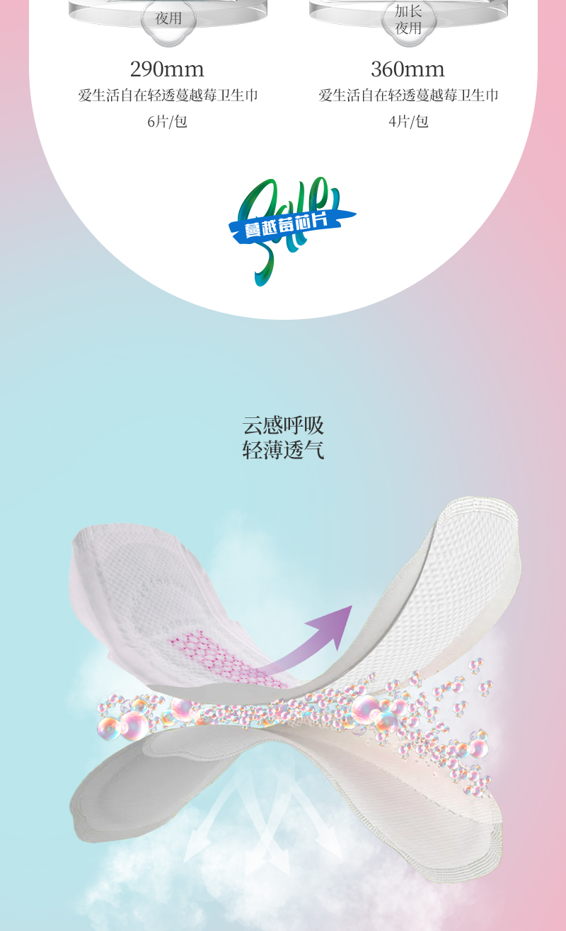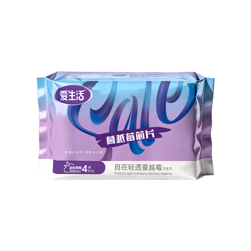 爱生活自在轻透蔓越莓卫生巾加长夜用360mm/4片装(每箱48包)