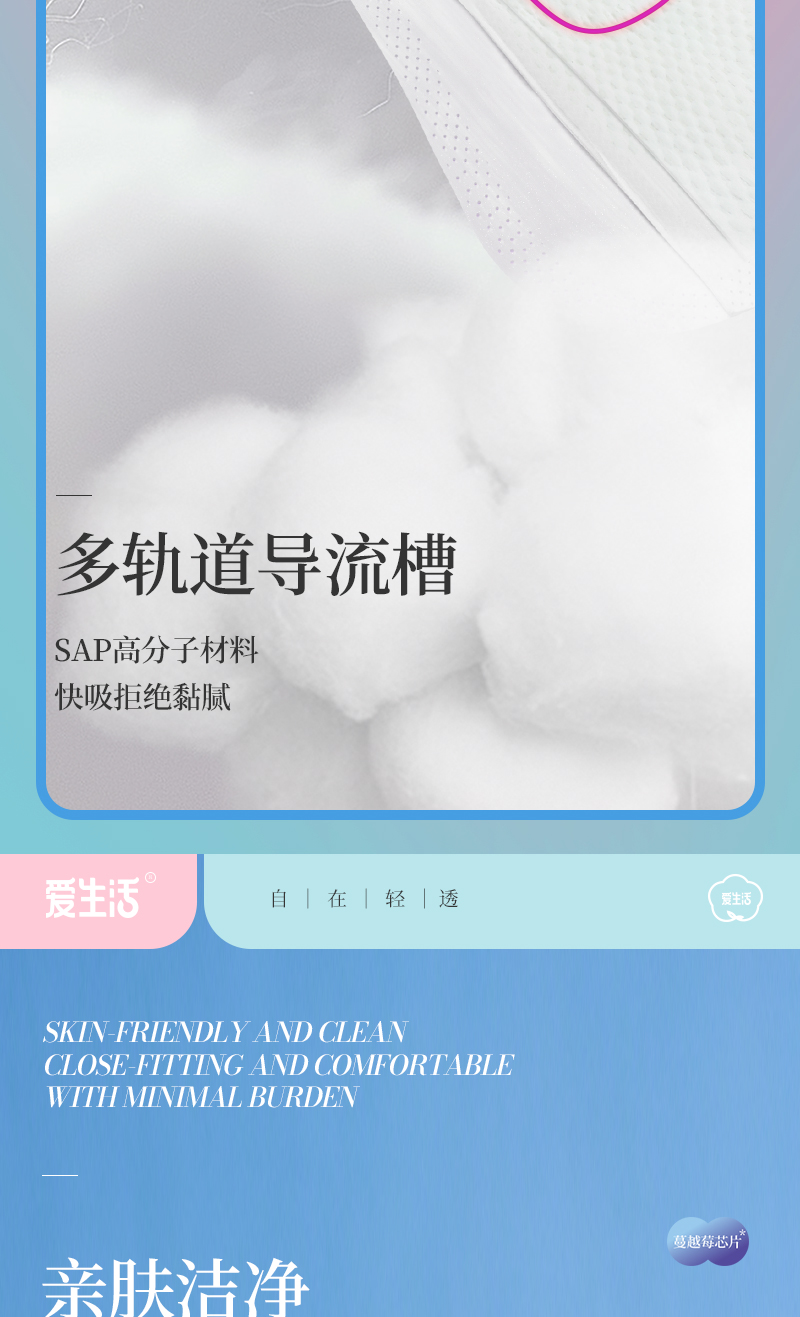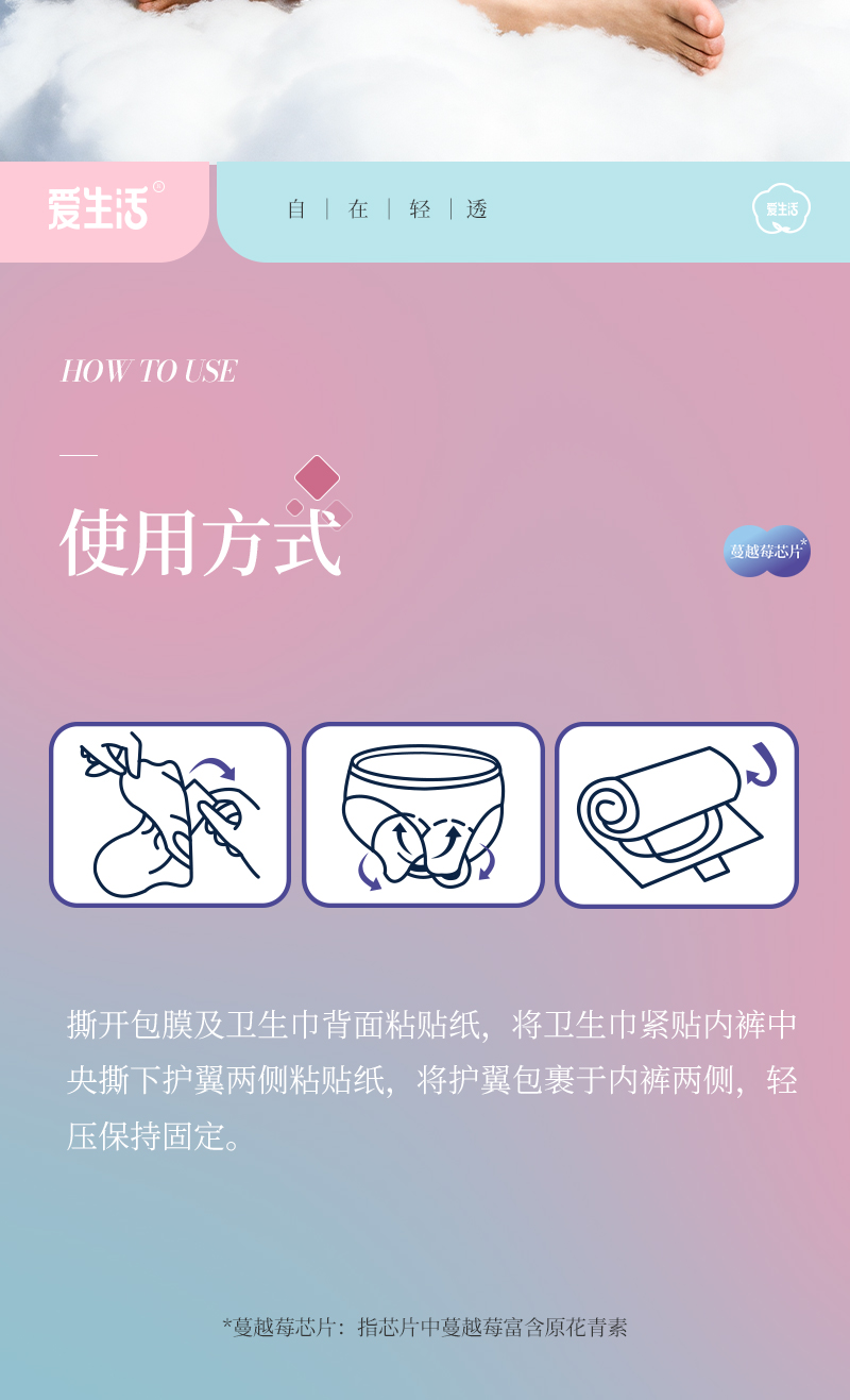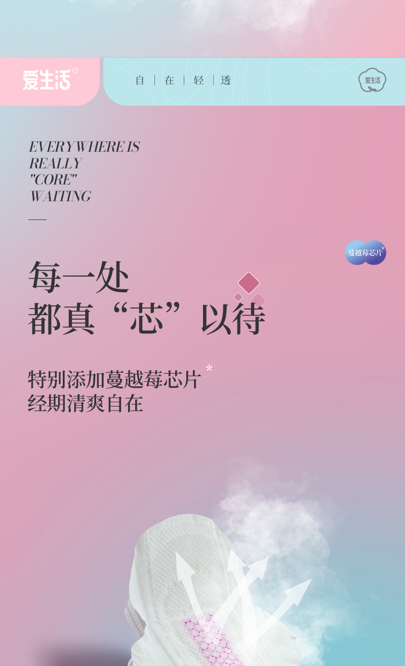 爱生活自在轻透蔓越莓卫生巾加长夜用360mm/4片装(每箱48包)