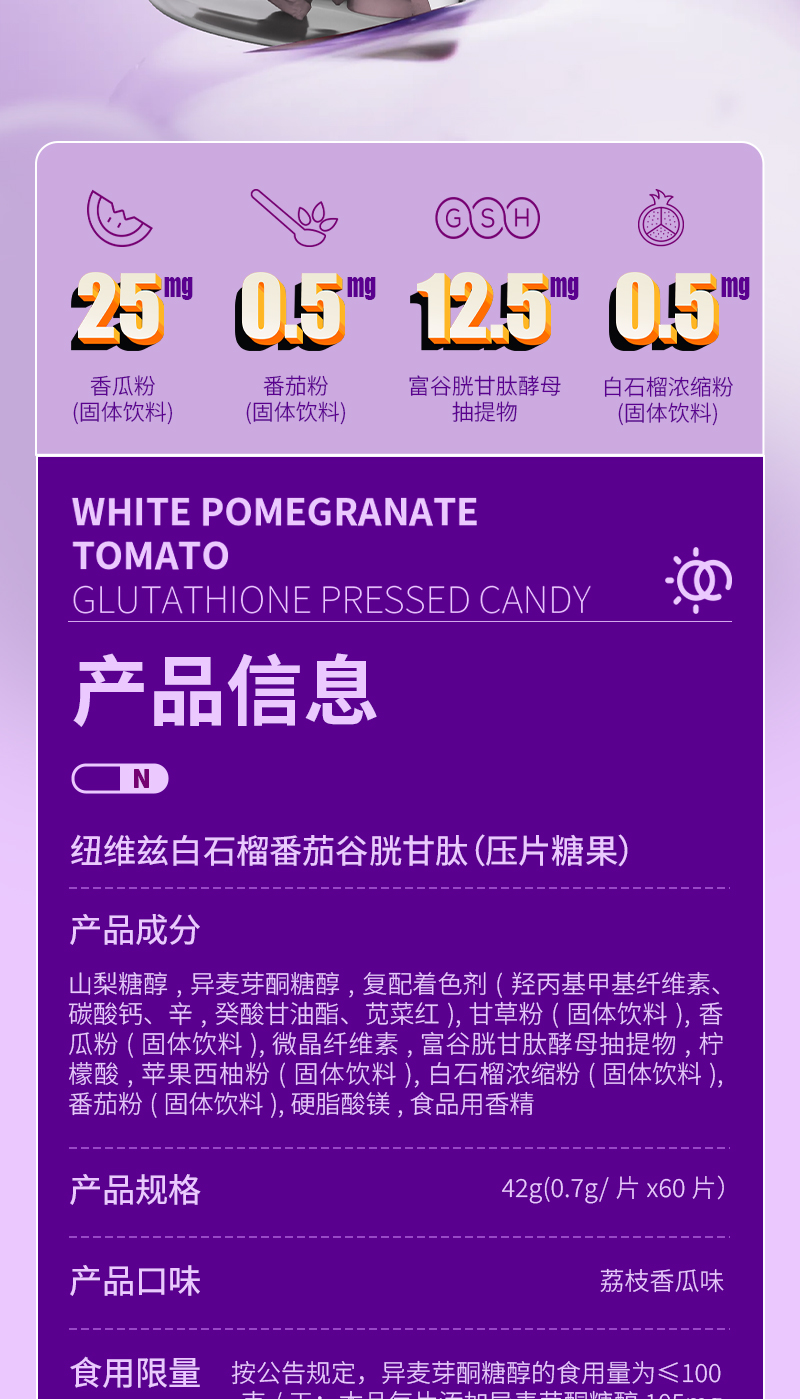 纽维兹白石榴番茄谷胱甘肽压片糖果(每箱35瓶)