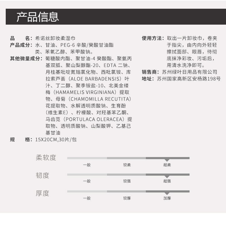 希诺丝卸妆柔湿巾/30P(每箱60包)