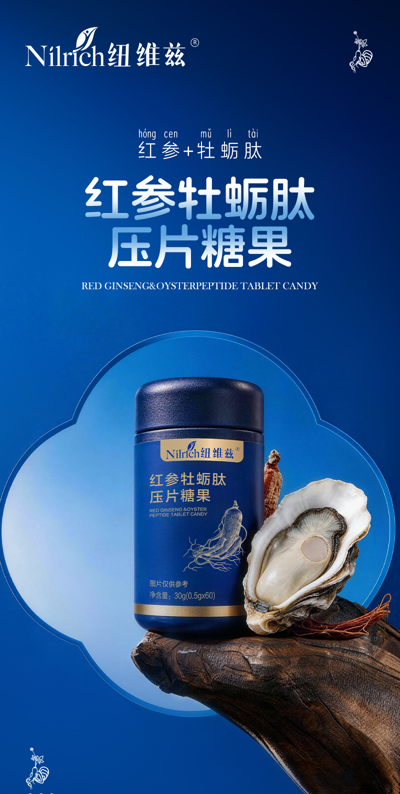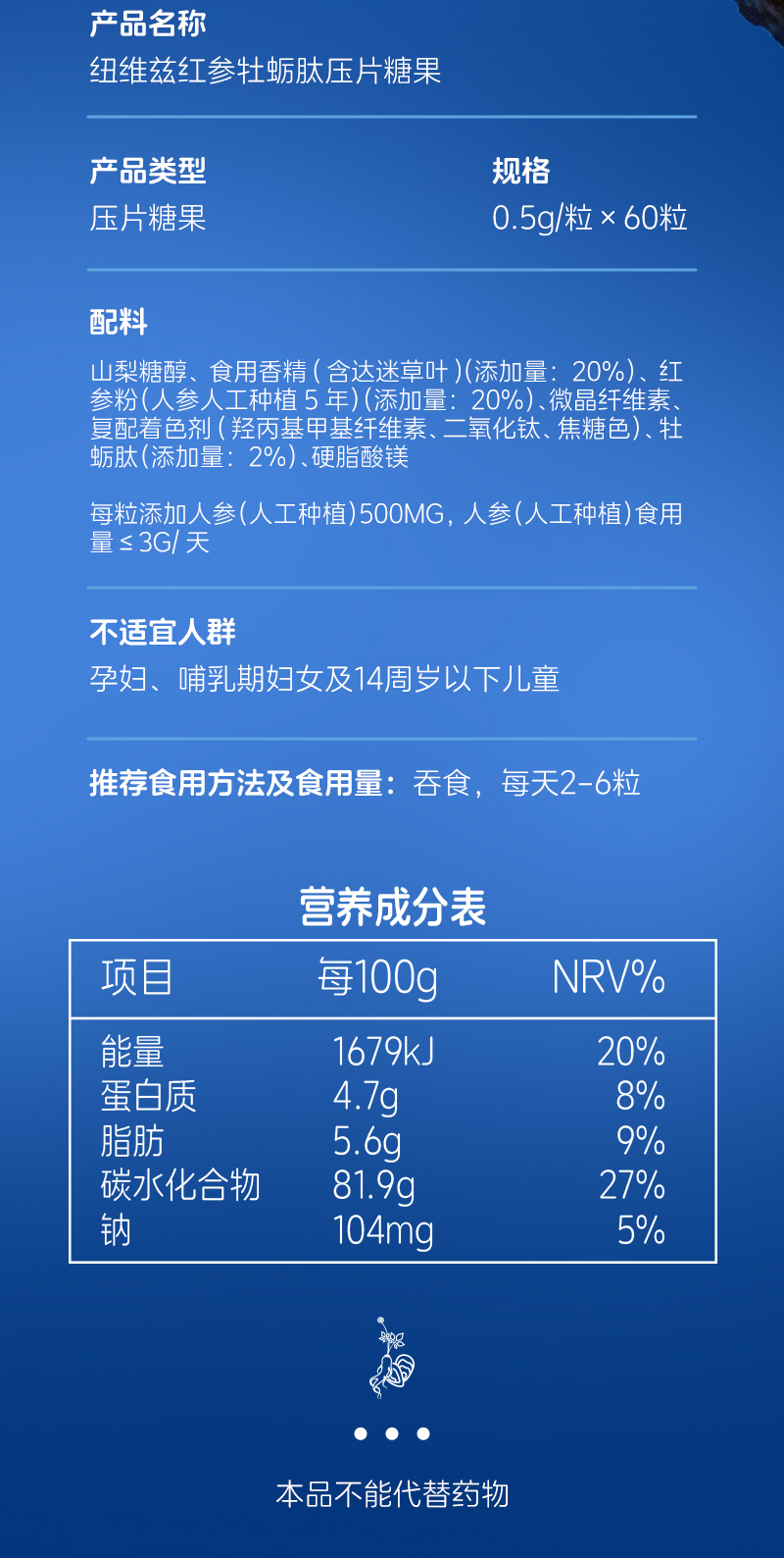 纽维兹红参牡蛎肽压片糖果每箱(96瓶)
