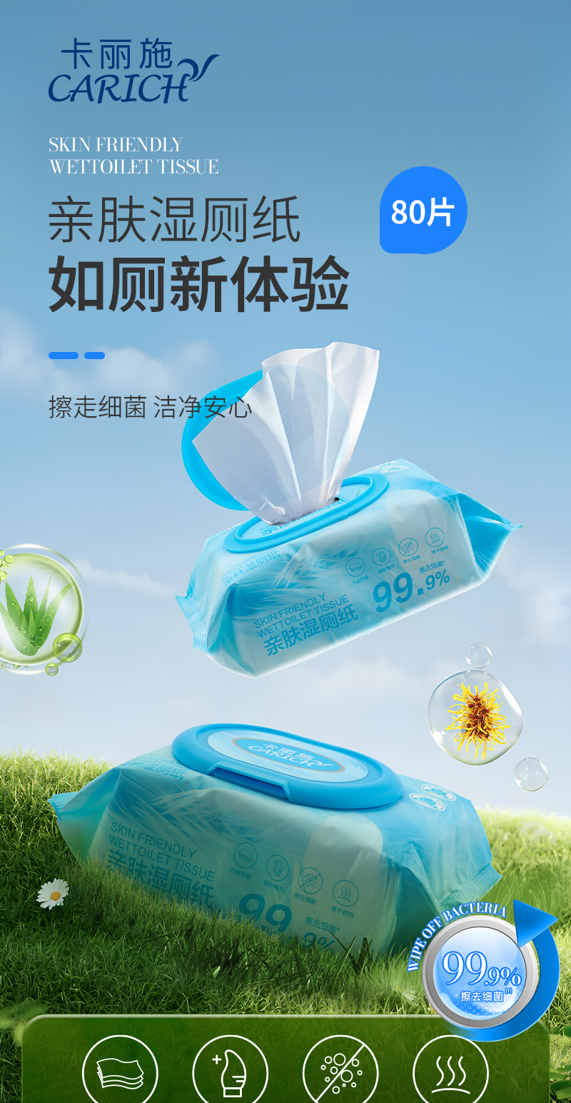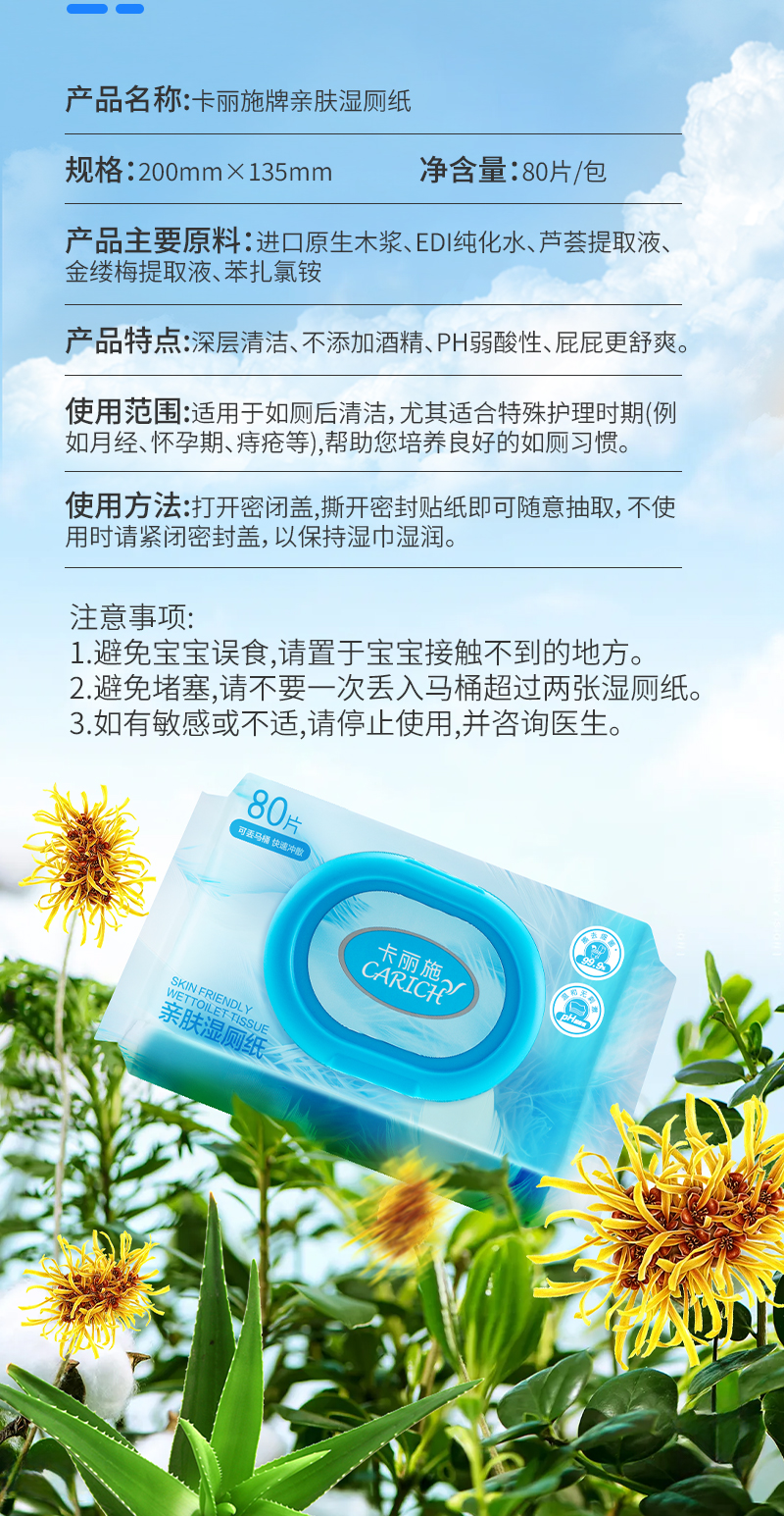 卡丽施牌亲肤湿厕纸80片(每箱15包)